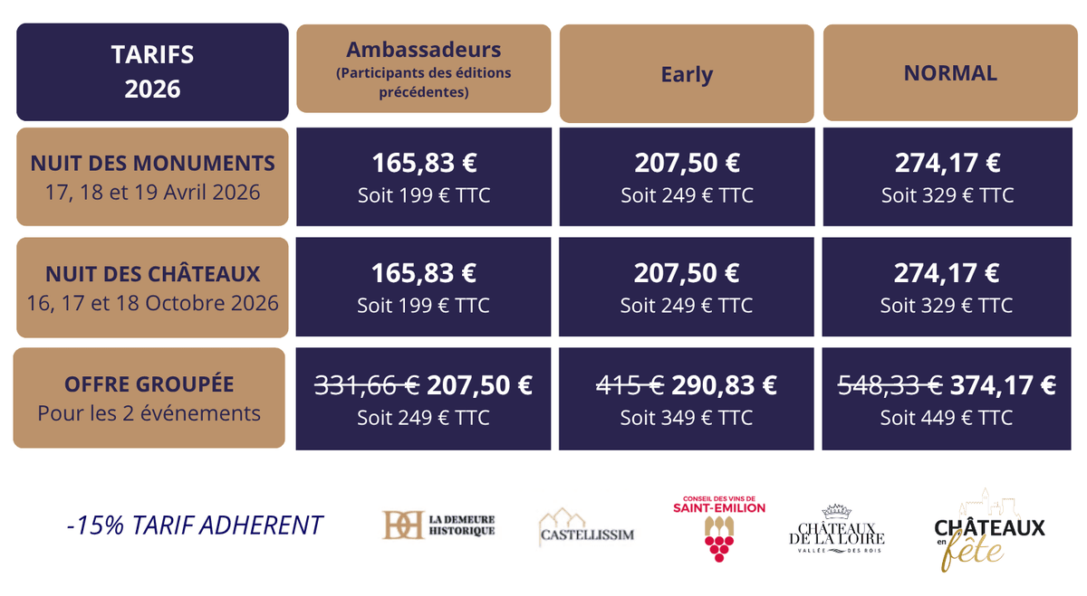 • Référencement de toutes les expériences sur www.nuitdeschateaux.com, www.nuitdesmonuments.com et billetweb.com.Les partenaires de l'événement